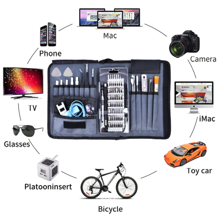 81 in 1 Multi-function Repair Tool Kits for Electronics and Toys With Canvas Bag FB01