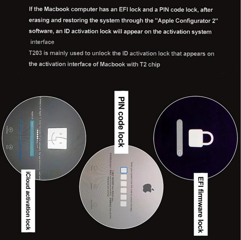 T203 is mainly used to unlock the ID activation lock that appears on the activation interface of the Macbook with T2 chip;