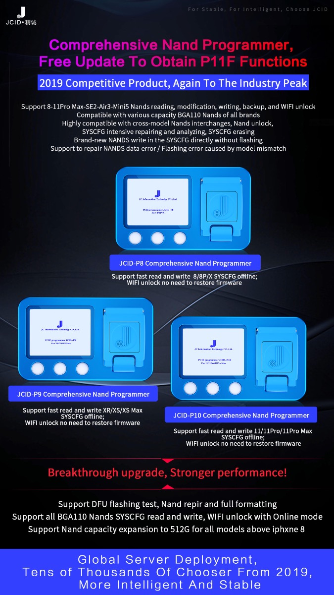 JC P8 Nand Programmer Support offline operation for iPhone 8/8P/X and AI server