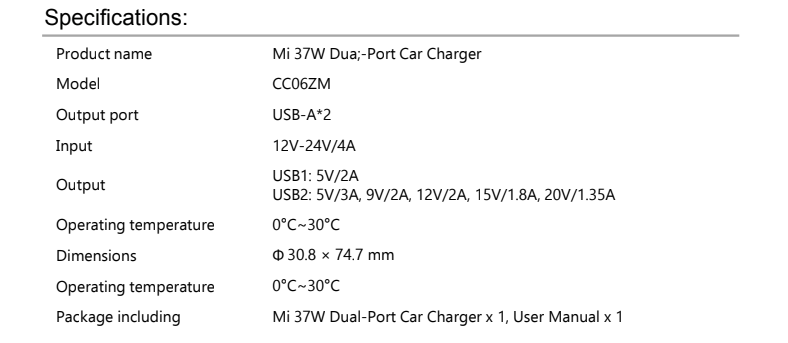 Mi 37W Dual-Port Car Charger