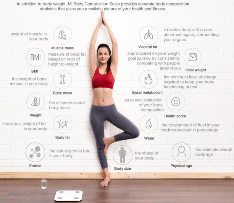 Besides measuring your weight, the scale can thanks to a series of complex algorithms and advanced Bioelectrical Impedance Analysis (BIA) give you accurate stats such as your BMI, muscle mass, bone mass and amount of fat. Additionally, you can test your balance simply by placing one foot on the scale, to let the scale analyze your balance.