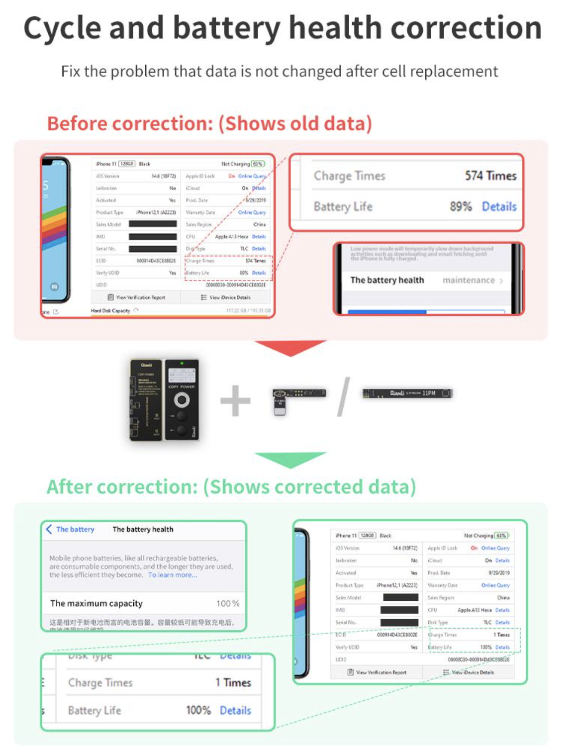 Fix the non-original pop up message problem together with Qianli battery cables;